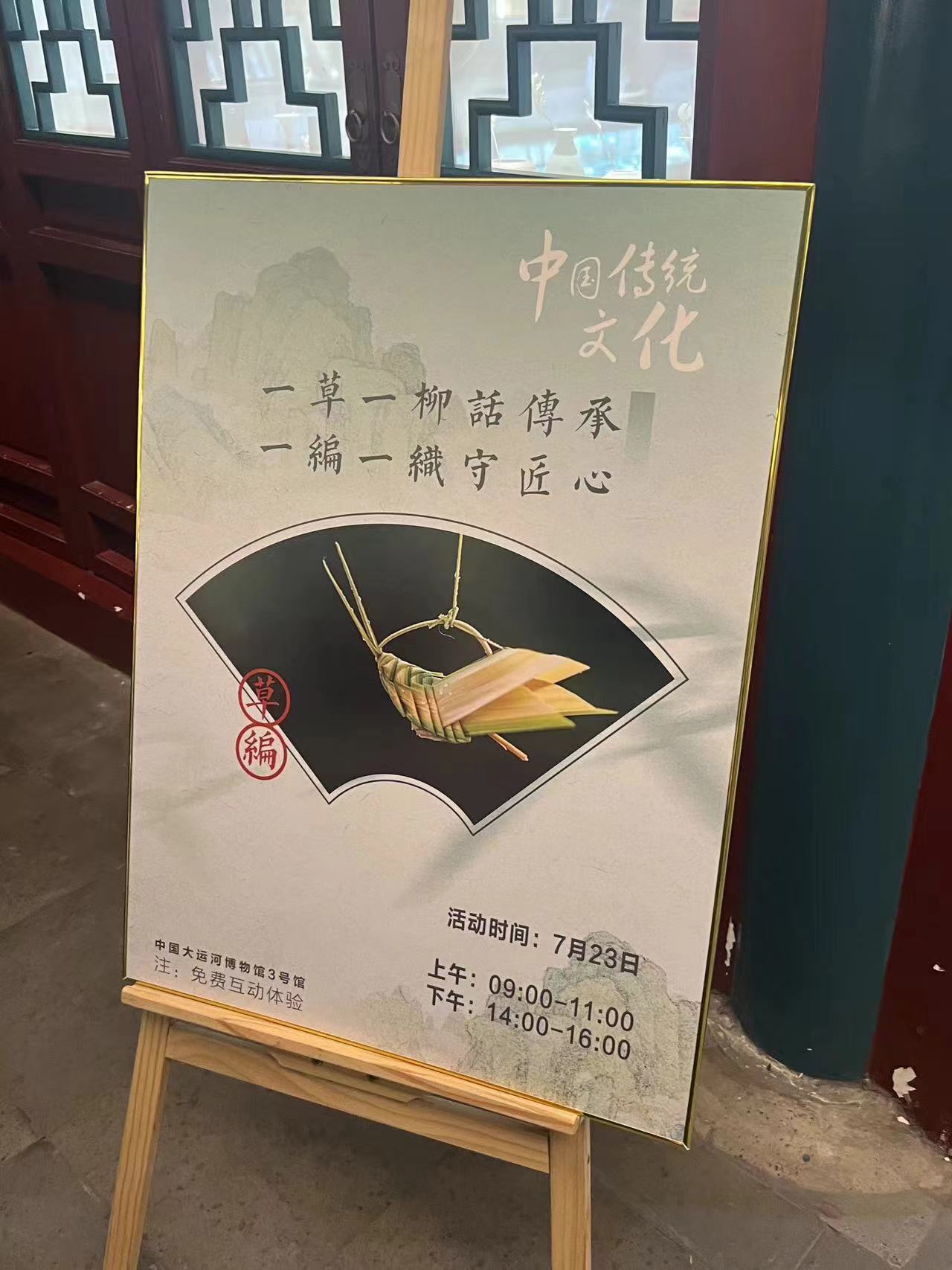 7月24日,我和隊(duì)友強(qiáng)藝婧一同踏上了前往揚(yáng)州大運(yùn)河博物館的旅程,參加了一次特別的非遺文化體驗(yàn)活動(dòng)——草編技藝。在那個(gè)充滿歷史與文化氛圍的地方,我們通過親手體驗(yàn)草編技藝,仿佛讓心靈得到了更深層次的觸動(dòng)和啟發(fā)。