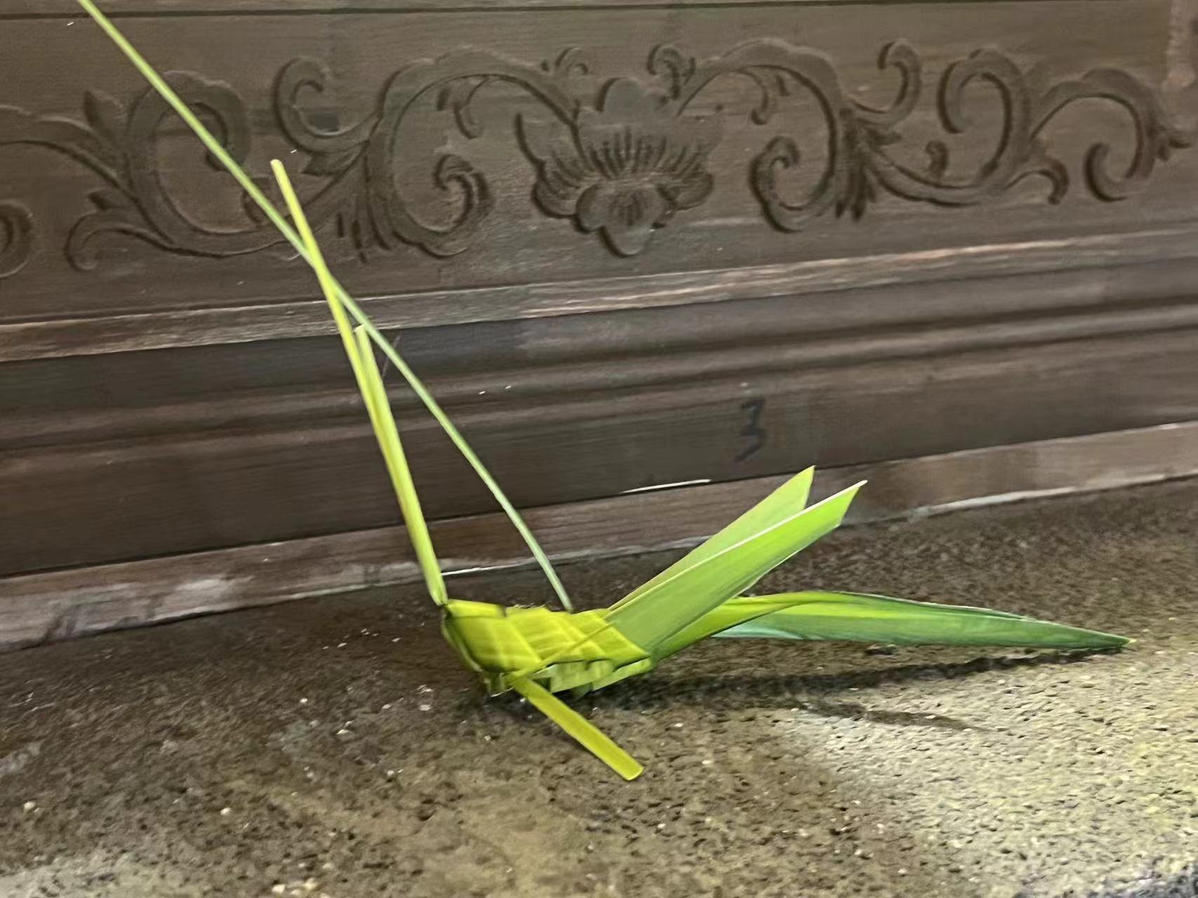 最挑戰(zhàn)的部分是編織螞蚱的觸須和腿,因?yàn)樗鼈円髽O高的精確度和細(xì)致度。我全神貫注,生怕一絲疏忽導(dǎo)致作品功虧一簣。就在我沉浸于其中,體會(huì)著手工藝帶來的無盡樂趣時(shí),我的小螞蚱漸漸“活”了起來。雖然它不如老師的樣品那般完美,但看著這只由我親手編織出的螞蚱,我心中充滿了無比的滿足和自豪。