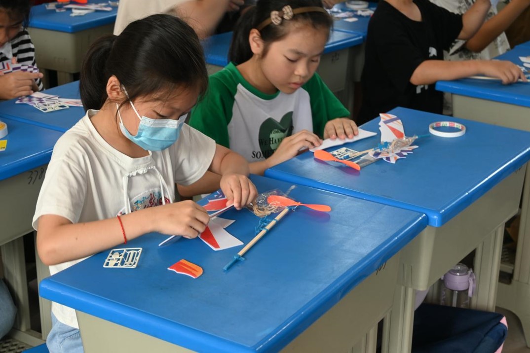 青春為中國(guó)式現(xiàn)代化挺膺擔(dān)當(dāng),讓志愿支教服務(wù)在邊疆地區(qū)中。7月12日,旨在科普航天知識(shí),點(diǎn)燃航天熱情,南京航空航天大學(xué)電子信息工程學(xué)院“山里創(chuàng)‘芯’的孩子”社會(huì)實(shí)踐團(tuán)隊(duì)在福建省福州市連江縣明智學(xué)校開展了特色手工課堂活動(dòng)——航模飛機(jī)的制作。