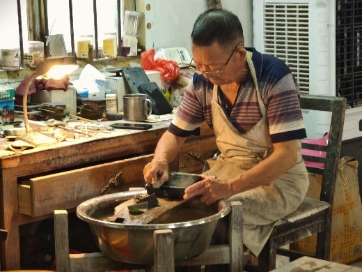 圖為項(xiàng)德勝大師講解徽墨藏品 中國青年網(wǎng)通訊員章成凱 供圖