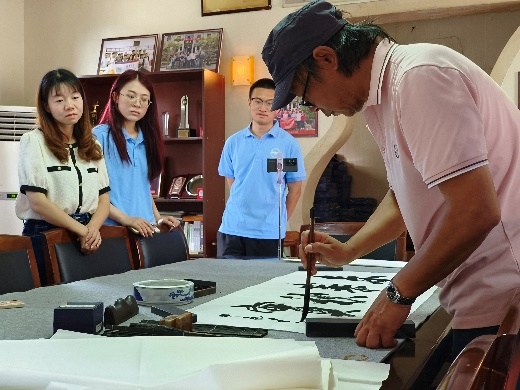 7月19日,我們走進(jìn)了歙縣老胡開文墨廠,我們目睹了墨從燒制松煙到成型干燥,每一步都需要工人師傅精心制作。在師傅的指導(dǎo)下,我們嘗試了給墨胚描金,雖然手法生疏,但卻飽受熏陶。王建畫家現(xiàn)場用徽墨作畫寫字,墨分五色,一派水墨徽州。隨后我們參觀了項(xiàng)式徽墨展館,對著陳列的徽墨作品,項(xiàng)德勝大師告訴我們:一兩黃金一兩墨。好墨金不換。
