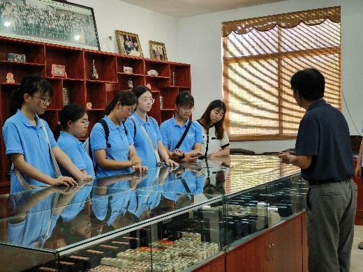 7月18日,我們參觀了安徽徽州歷史博物館,博物館內(nèi)的展品不僅讓我們了解了徽州的歷史發(fā)展脈絡(luò),還領(lǐng)略了徽派建筑、徽州雕刻、繪畫、徽墨等的獨(dú)特魅力,就像是走進(jìn)了那個經(jīng)濟(jì)繁榮,文化昌盛的水墨徽州。接著參觀了歙縣古城墨硯博物館,最讓我們印象深刻的是歙硯作品“一帶一路“和”眾志成城“,通過將歙硯與時代背景相結(jié)合,展現(xiàn)了中華文化的悠久歷史和豐厚底蘊(yùn)。胡秋生館長談到:”一輩子堅(jiān)持一件事情是很幸福的“,在他身上我們真正看到了大國工匠的情懷與擔(dān)當(dāng)。正是因?yàn)樗麑ǔ幍臒釔酆筒粩嗟膭?chuàng)新,才使得歙硯雕刻技藝代代相傳。