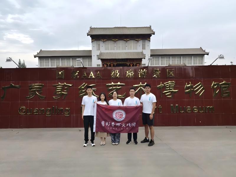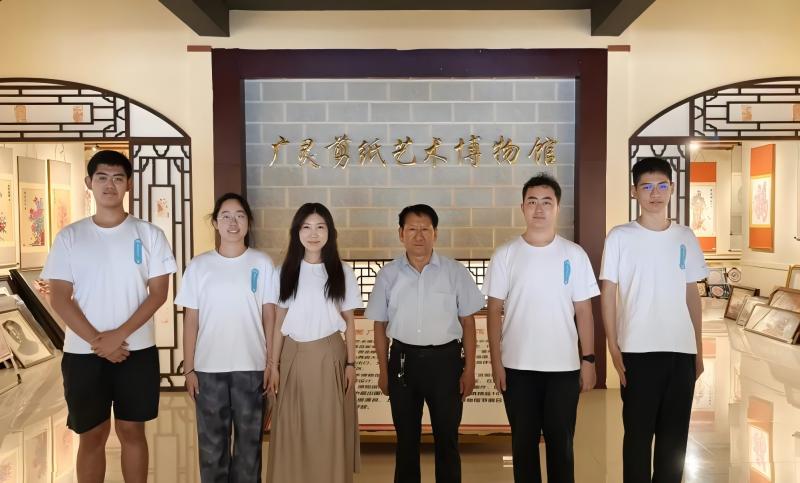圖為東南大學(xué)剪彩晉輝實(shí)踐團(tuán)部分成員在廣靈剪紙藝術(shù)博物館前合影