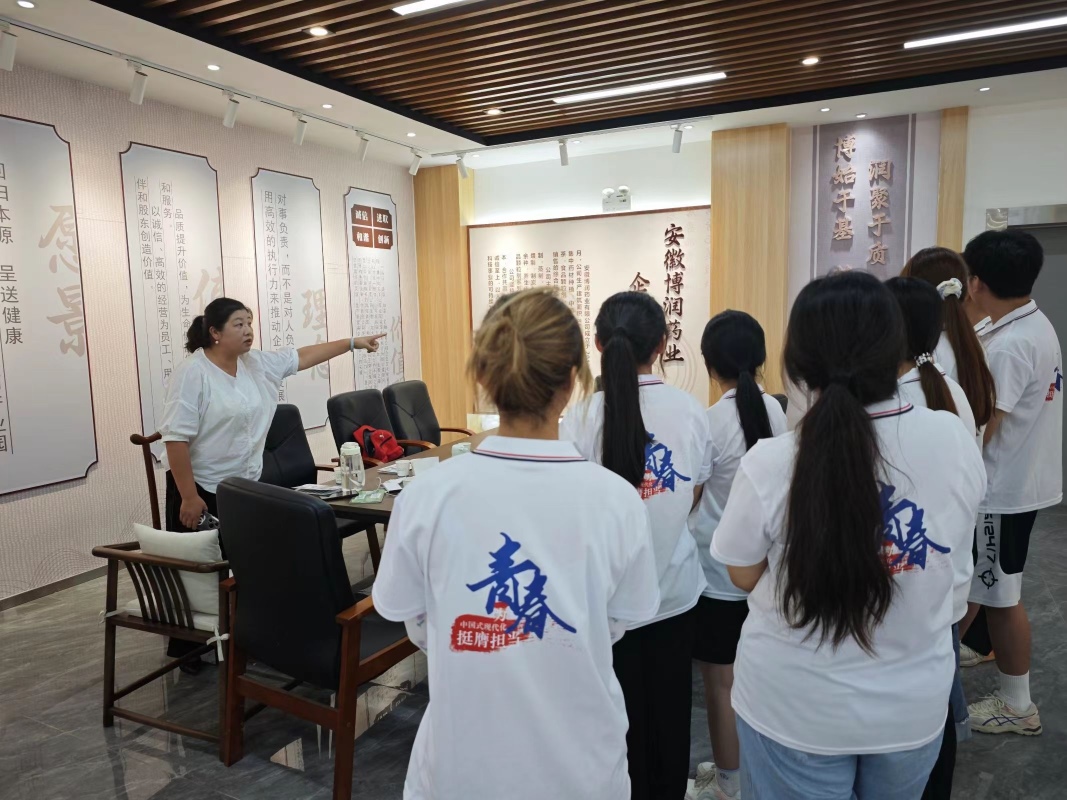晴空萬(wàn)里,金色的陽(yáng)光灑滿大地。巢湖學(xué)院生物與環(huán)境工程學(xué)院“攜神農(nóng)之火,播岐黃之種”中醫(yī)藥研學(xué)實(shí)踐團(tuán)于安徽博潤(rùn)藥業(yè)有限公司開(kāi)展“國(guó)粹中醫(yī),藥傳千古”主題活動(dòng),踏入房間映入我眼簾的是,一幀幀中草藥畫(huà)卷躍然于墻,詳盡的藥片誕生記亦刻畫(huà)于墻,老板黃總的身影伴隨著企業(yè)宣傳片的播放為我們勾勒出一幅幅中草藥的圖片。