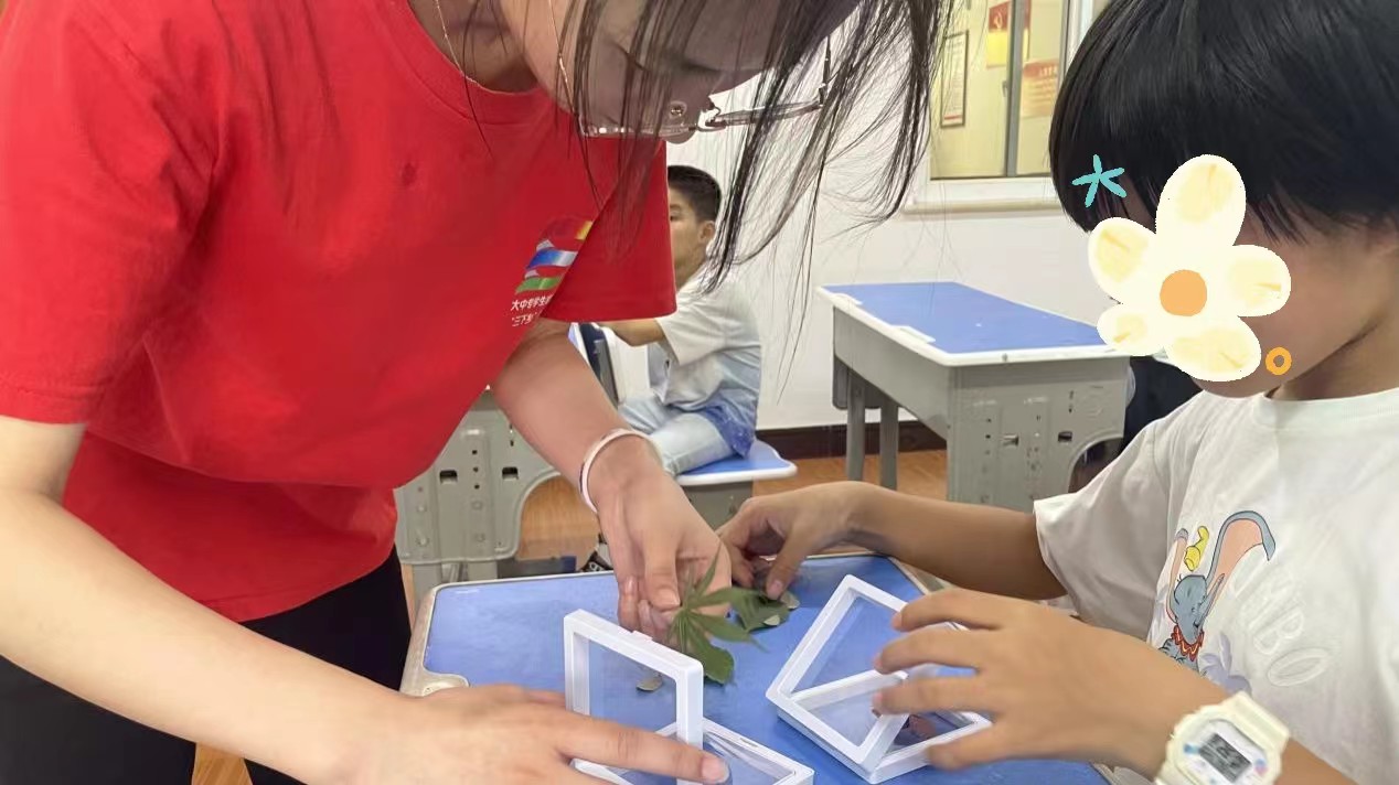 植物是自然界不可或缺的一部分,了解植物不僅能夠增進孩子們對自然界的認識,還能激發(fā)他們對生物學(xué)的興趣。為了讓學(xué)生們近距離接觸自然,體驗科學(xué)的魅力,志愿者們再次帶領(lǐng)孩子們制作植物標本(裝框)的實踐活動。