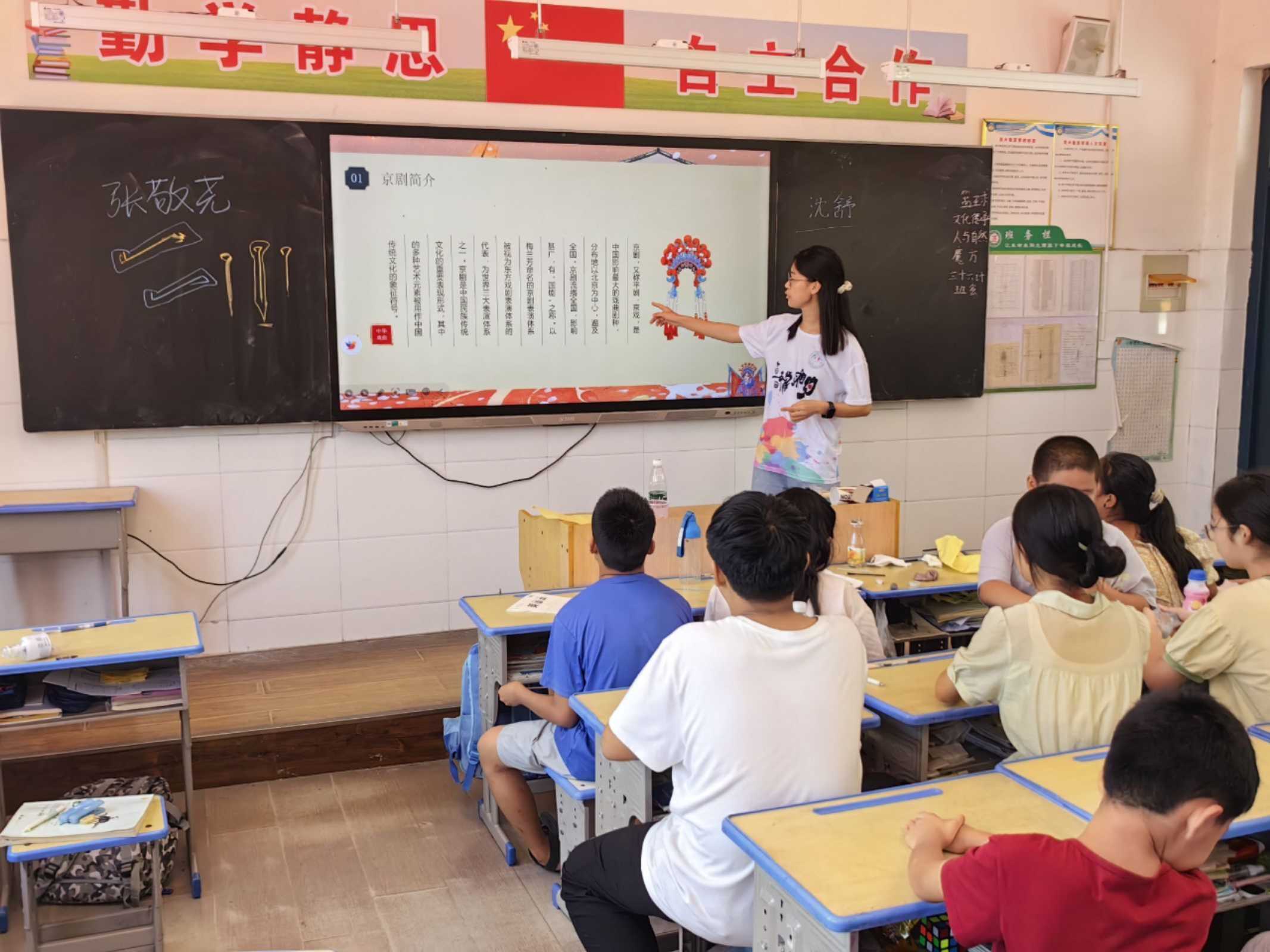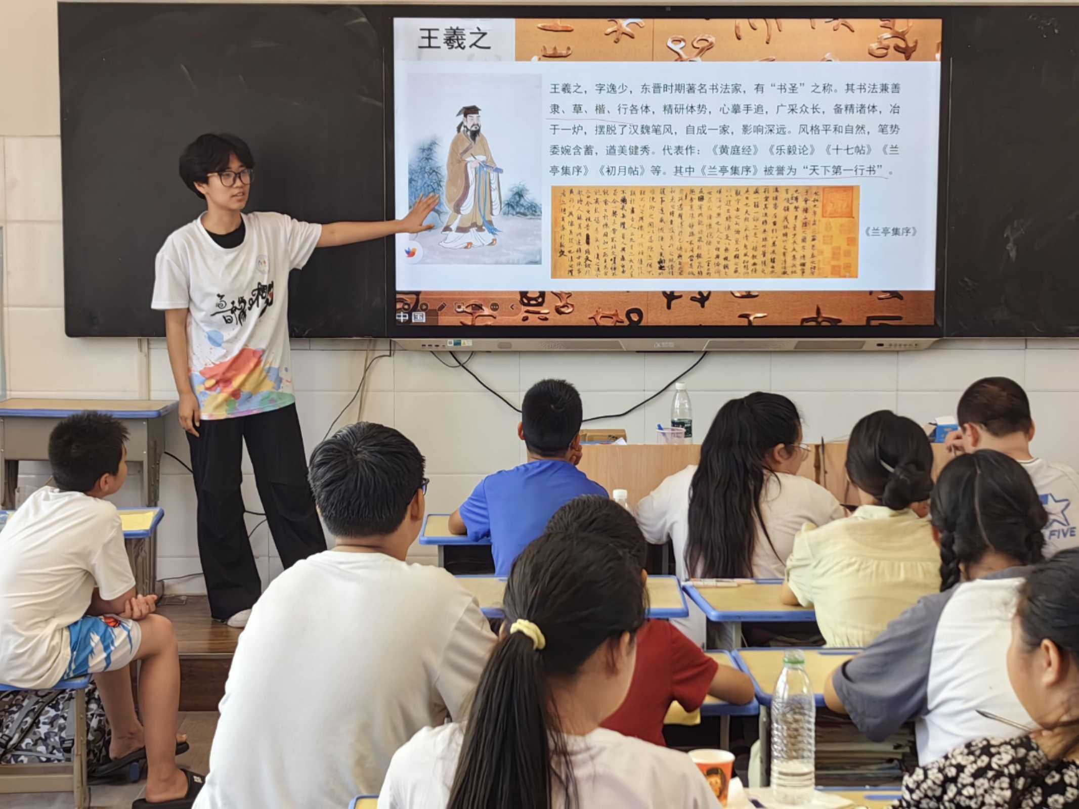 2024年7月31日,支教隊(duì)在五頭鎮(zhèn)中心小學(xué)的教學(xué)活動(dòng)還在繼續(xù)。隊(duì)長(zhǎng)沈舒的文化傳承主題課程成功啟動(dòng),為五六年級(jí)的同學(xué)帶來了別開生面的最美漢字課。孩子們?cè)诶蠋煹膸ьI(lǐng)下嘗試書寫毛筆字,欣賞名家書畫作品。同時(shí),魯豫相約支教隊(duì)連線星光支教隊(duì),共享文化資源。星光支教隊(duì)為孩子們帶來傳統(tǒng)民俗服飾文化課程,魯豫相約支教隊(duì)也給同學(xué)們講解了博大精深的戲曲文化。