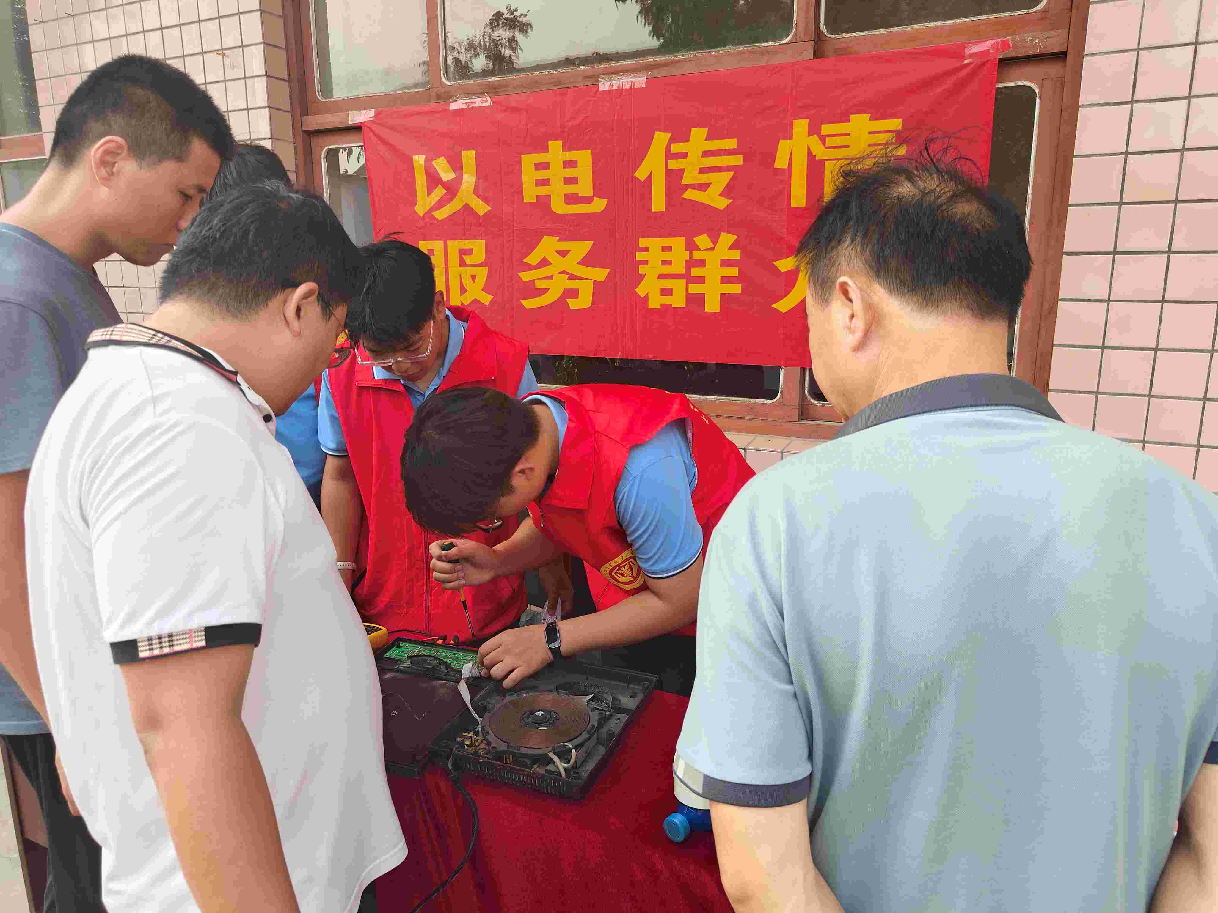 在老師指導(dǎo)下,隊(duì)員們?yōu)榍皝?lái)尋求幫助的村民認(rèn)真檢測(cè)家用電器的故障,他們緊密協(xié)作、各司其職,共同克服了一道道難題,完成了一次次檢修。本次活動(dòng),隊(duì)員們?yōu)榇迕駛兙S修電風(fēng)扇、熱水壺、電鍋、電磁爐等各種小家電共計(jì)十多種,維修成功率高達(dá)80%以上,成果斐然。