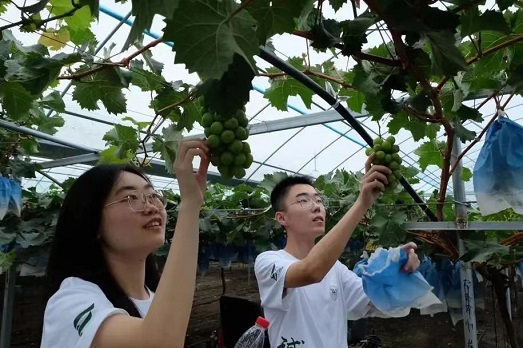 團隊來到了廣洋湖鎮(zhèn)的葡萄產(chǎn)業(yè)園,在梁書記的帶領(lǐng)下,實踐團成員詳細(xì)了解了廣洋湖的葡萄產(chǎn)業(yè),發(fā)現(xiàn)廣洋湖鎮(zhèn)依托本地優(yōu)質(zhì)資源來打造現(xiàn)代智能產(chǎn)業(yè)園,面積近800畝,種植“陽光玫瑰”等熱銷品種。經(jīng)過廣洋湖鎮(zhèn)的智能化管理、高效灌溉助力高產(chǎn),預(yù)計年產(chǎn)值超5000萬,帶動了經(jīng)濟繁榮,未來將持續(xù)壯大,成為農(nóng)業(yè)支柱產(chǎn)業(yè)。