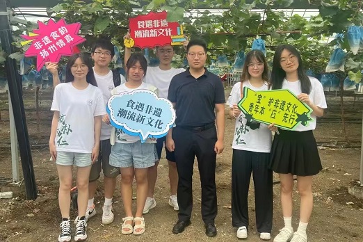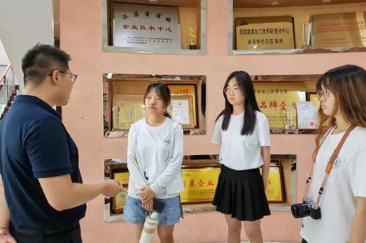 7月10日,南京農(nóng)業(yè)大學(xué)食品科技學(xué)院“食遇非遺,潮流新文化”暑期社會實踐團在廣洋湖鎮(zhèn)團委書記、經(jīng)濟發(fā)展局副局長梁文彬的帶領(lǐng)下走進(jìn)揚州市寶應(yīng)縣廣洋湖鎮(zhèn)進(jìn)行參觀學(xué)習(xí)。
