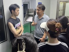 本次參觀學習共有來自農(nóng)科院三位老師帶領,他們分別是來自畜禽加工創(chuàng)新團隊的閆征老師、功能農(nóng)產(chǎn)品創(chuàng)新團隊的滕聰老師、以及食品生物工程創(chuàng)新團隊的朱勇生老師。三位老師分別帶領團隊前往各自研究領域的生產(chǎn)加工車間,詳細講解了生產(chǎn)加工的設備,研究成果以及研究團隊的背景等。三伏盛夏,天氣十分炎熱,但卻澆滅不了同學們學習探索的熱情。在參觀學習的過程中,同學們興趣盎然,不僅認真聆聽著老師們的講解,還不時拿出手機拍照記錄,與同伴溝通交流。鮑正揚同學說,之前都是在《機械設備》的課堂上看到這些設備的照片,第一次近距離地接觸這些設備,這種感覺好神奇,課本上的照片變成了實物。老師對著反應設備講到的一些食品化學的反應也與同學們在學校課堂上學習的知識形成了呼應,真真切切地將課本上的知識與生產(chǎn)實際聯(lián)系起來了。