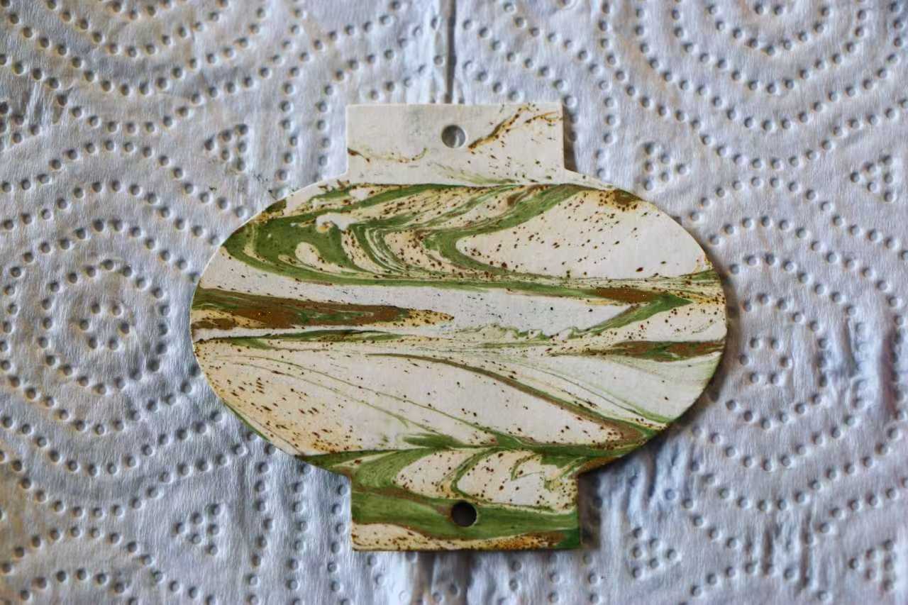 在了解了漆藝的歷史和制作步驟后,翁海欣老師現(xiàn)場演示了漂漆書簽的制作過程。王彩菲老師在旁輔助講解制作原理,介紹大漆不溶于水的特性,以及如何將稀釋劑與礦物顏料混合大漆,形成流動的“漂流漆”。她還詳細(xì)演示了在水面創(chuàng)作圖案的技巧,如點(diǎn)、甩、彈、劃等手法,以及如何將宣紙工藝制成的扇面浸入水中,制作出變化無窮、光彩奪目的紋路。