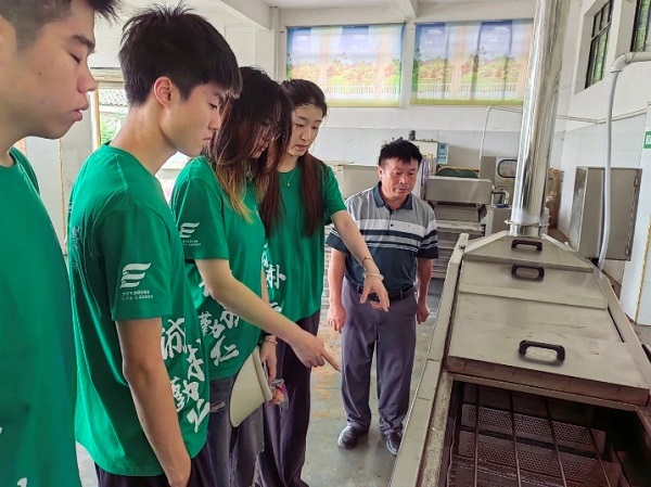 參觀花卉基地后,實踐團成員前往當(dāng)?shù)氐霓Р思庸S,其中有幾臺設(shè)備由南京農(nóng)業(yè)大學(xué)食品院提供。同學(xué)們積極與工作人員交流討論,深入了解蕨菜加工機械及其加工生產(chǎn)流程,感受到加工產(chǎn)業(yè)機械化、規(guī);闹匾。