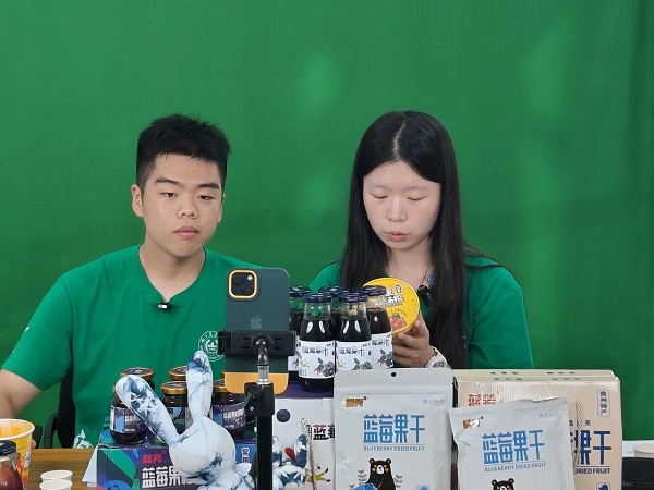 下午,活動團隊結(jié)合自身在麻江實踐經(jīng)歷的所思所想,為麻江縣特色鄉(xiāng)村產(chǎn)業(yè)的產(chǎn)品進行直播推廣,包括對于麻江特色產(chǎn)業(yè)產(chǎn)品,如玉夢酸湯、藍笑藍莓制品,以及人文景觀、非遺文化等的宣傳介紹。