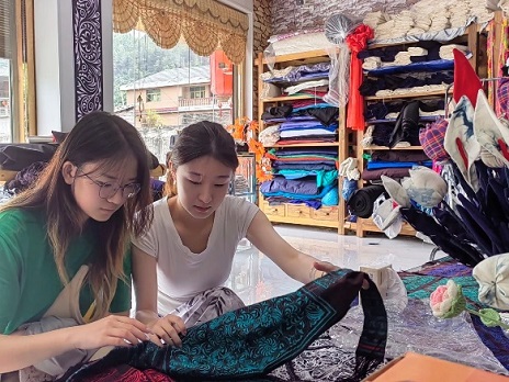 7月11日上午,實踐團前往貴州省麻江縣龍山鎮(zhèn)河壩村參觀麻江瑤之韻成秀文化有限公司。