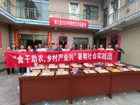 在當(dāng)?shù)嘏e辦的玉米品鑒大會上,實踐團成員們和當(dāng)?shù)鼐用褚约稗r(nóng)科院工作人員一起參與品鑒不同種類玉米味道與口感的獨特之處。