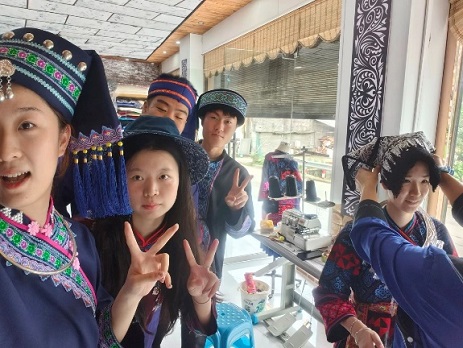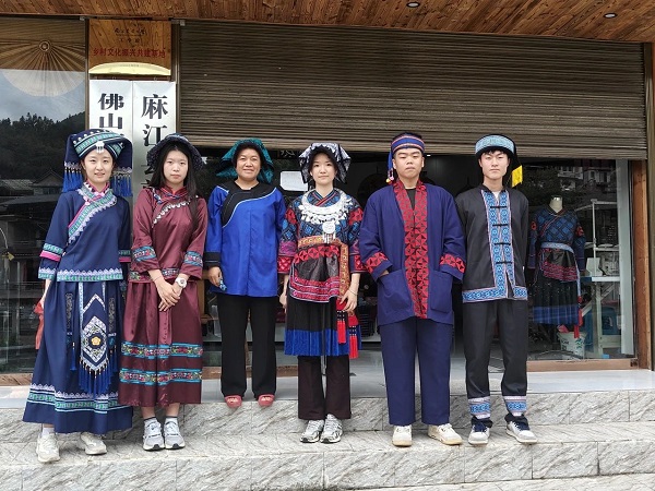 接著,實踐團成員們在指導(dǎo)下?lián)Q上瑤族特色民族服裝。在匠人的巧手下,藍靛草、板藍根、茜草……這些看似不起眼的植物,化作了服裝上斑斕的色彩,熠熠生輝。