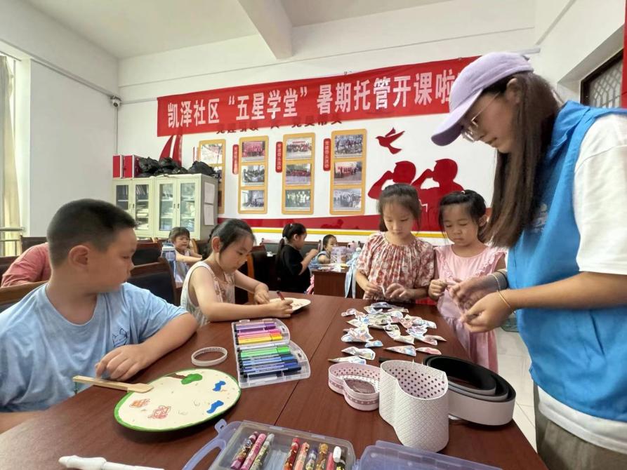 圖為實踐隊員向小朋友指導(dǎo)繪畫