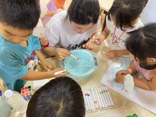 一二年級的小朋友們在谷雨老師的指導下,親手體驗了漆扇制作,于水墨丹青之間領略藝術的魅力。