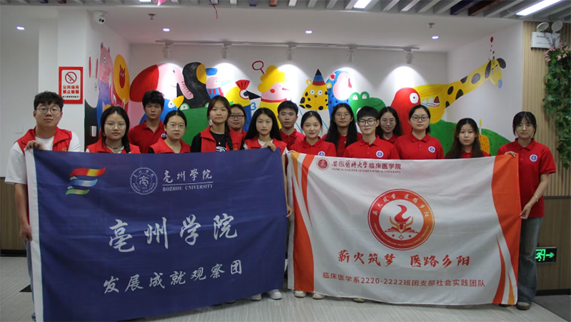 圖為“薪火筑夢,醫(yī)路鄉(xiāng)陽”社會(huì)實(shí)踐團(tuán)隊(duì)成員與亳州學(xué)院三下鄉(xiāng)團(tuán)隊(duì)成員的合影留念。
