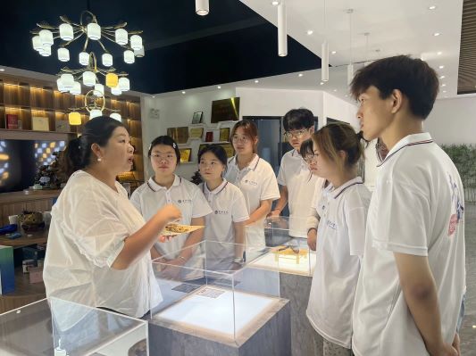 懷昭昭之志,堅(jiān)守自我,素履以往,方能“懼懷逸興壯思飛”。在公司大廳里,學(xué)生們和公司黃總圍坐在一張大桌旁,面前擺放著五彩斑斕的中草藥。在黃總的講解下,我們學(xué)會(huì)了如何通過觀察中藥的顏色、形狀、質(zhì)地等特征,初步判斷其性味歸經(jīng)及主要功效。比如,紅色的丹參活血通經(jīng),黃色的黃芪補(bǔ)氣升陽..….每一次的辨識(shí),都是對(duì)中藥智慧的一次深刻領(lǐng)悟,讓學(xué)生們對(duì)中醫(yī)藥的博大精深有了更加直觀的認(rèn)識(shí)。期間,黃總還特色舉例說明某些不法分子將紅花偽造成藏紅花,強(qiáng)調(diào)藥企制藥要注重良心。黃總還向我們強(qiáng)調(diào)中藥講究“千人千方”,通過辨證施治,中醫(yī)能夠?yàn)槊總(gè)患者提供最適合其個(gè)人情況的治療方案,從而達(dá)到更好的治療效果。這不僅體現(xiàn)了中醫(yī)藥的智慧,也為現(xiàn)代醫(yī)學(xué)提供了寶貴的參考和啟示。