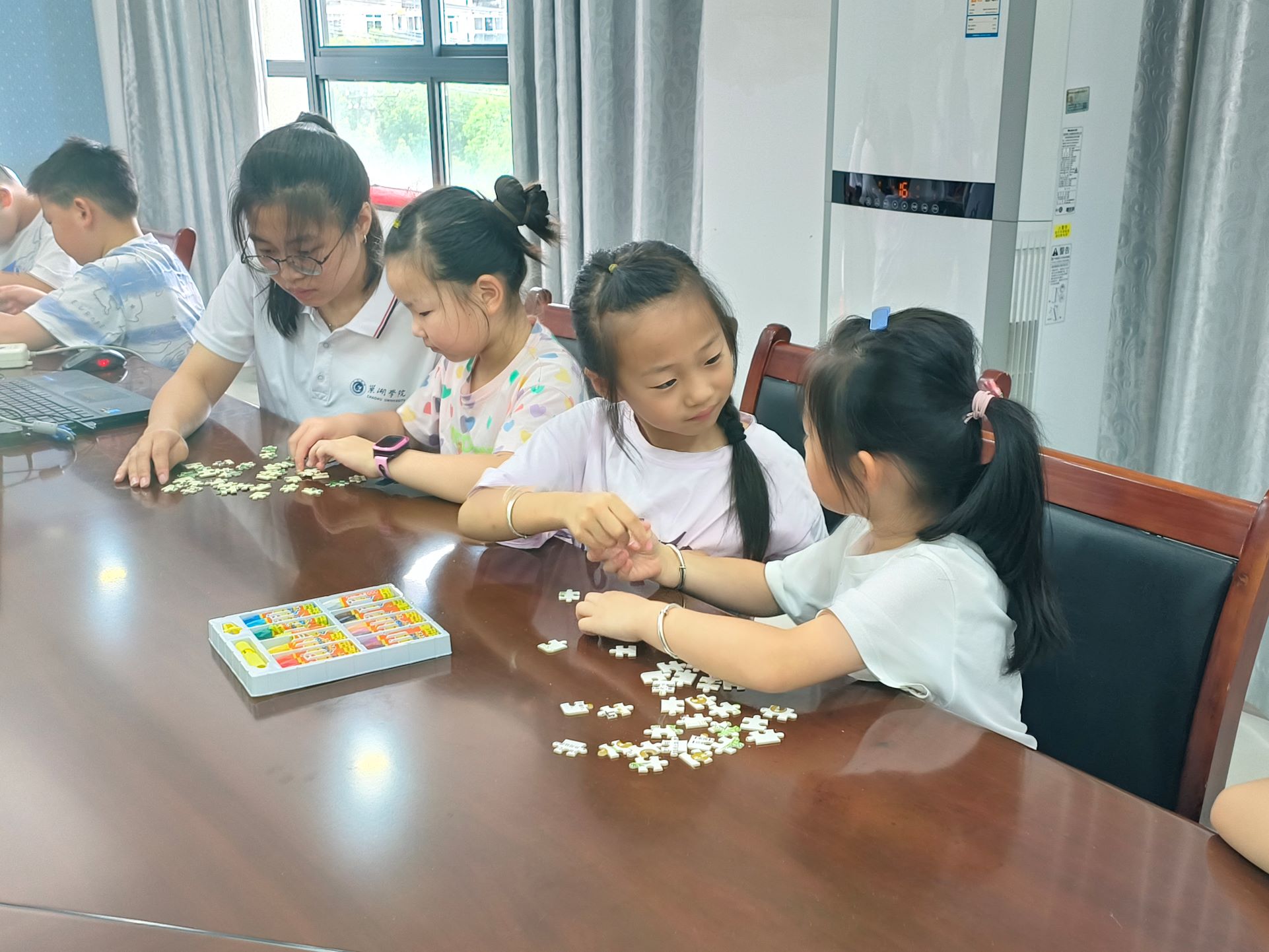 7月27日上午,實踐團成員去到了巢湖市的崗領(lǐng)社區(qū)。首先,鮑雪萍通過講述PPT的方式幫助小朋友們對中醫(yī)藥文化有一個簡單的了解。再講解完一些中醫(yī)藥文化的趣味小知識后,團隊成員帶領(lǐng)小朋友開展一系列趣味中醫(yī)小游戲。在志愿者的指導(dǎo)下,一小部分小朋友將手中的艾草包進行創(chuàng)作,一個個艾草錘在他們的小手中誕生。還有幾位小朋友把一塊塊中草藥知識拼圖拼湊在一起;顒咏Y(jié)束后,小朋友們紛紛表示,“想要成為小小藥師,做中醫(yī)文化的傳承者”。