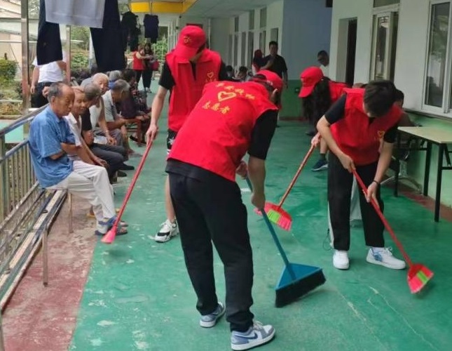 圖為志愿者在養(yǎng)老院打掃衛(wèi)生