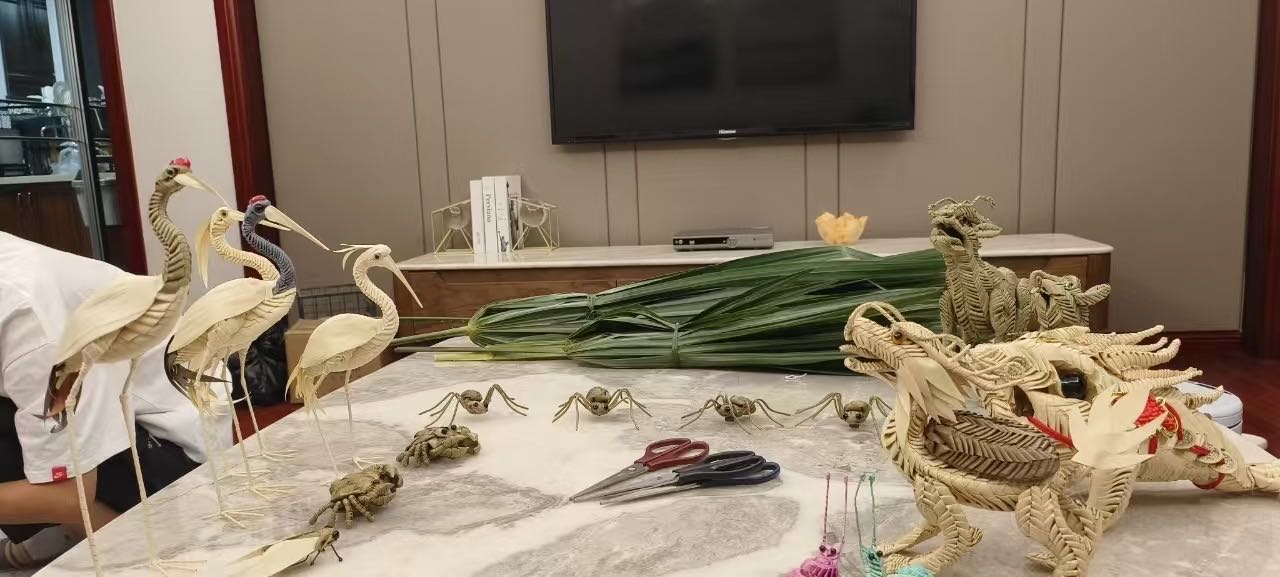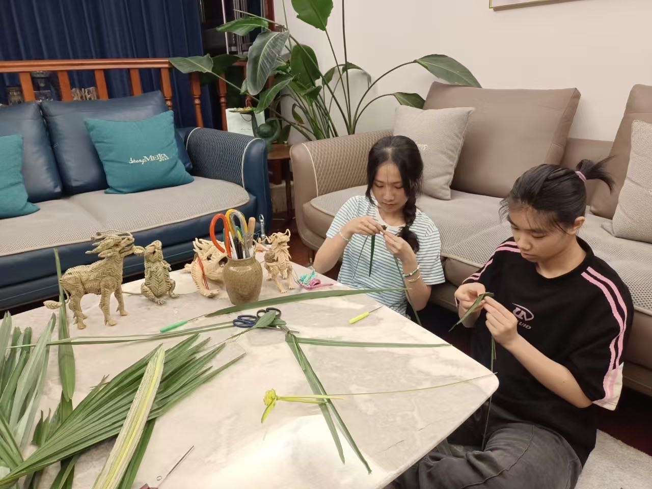 棕編則是泰順人民利用自然恩賜進(jìn)行藝術(shù)創(chuàng)作的又一佳作。7月19日,實(shí)踐隊(duì)邀請到雷光育老師到家中教學(xué)傳統(tǒng)的泰順柳葉棕編。他以棕櫚葉為材料,巧手編織出各種既實(shí)用又美觀的生活用品和裝飾品。有捉泥鰍用的小陷阱,有動物花草。這些棕編作品,每一根纖維都蘊(yùn)含著自然的韻律,每一件成品都承載著匠人的心血與夢想。在鄉(xiāng)村振興的浪潮中,棕編技藝得到了更好的傳承與發(fā)展,成為鄉(xiāng)村文化的一張亮麗名片。
