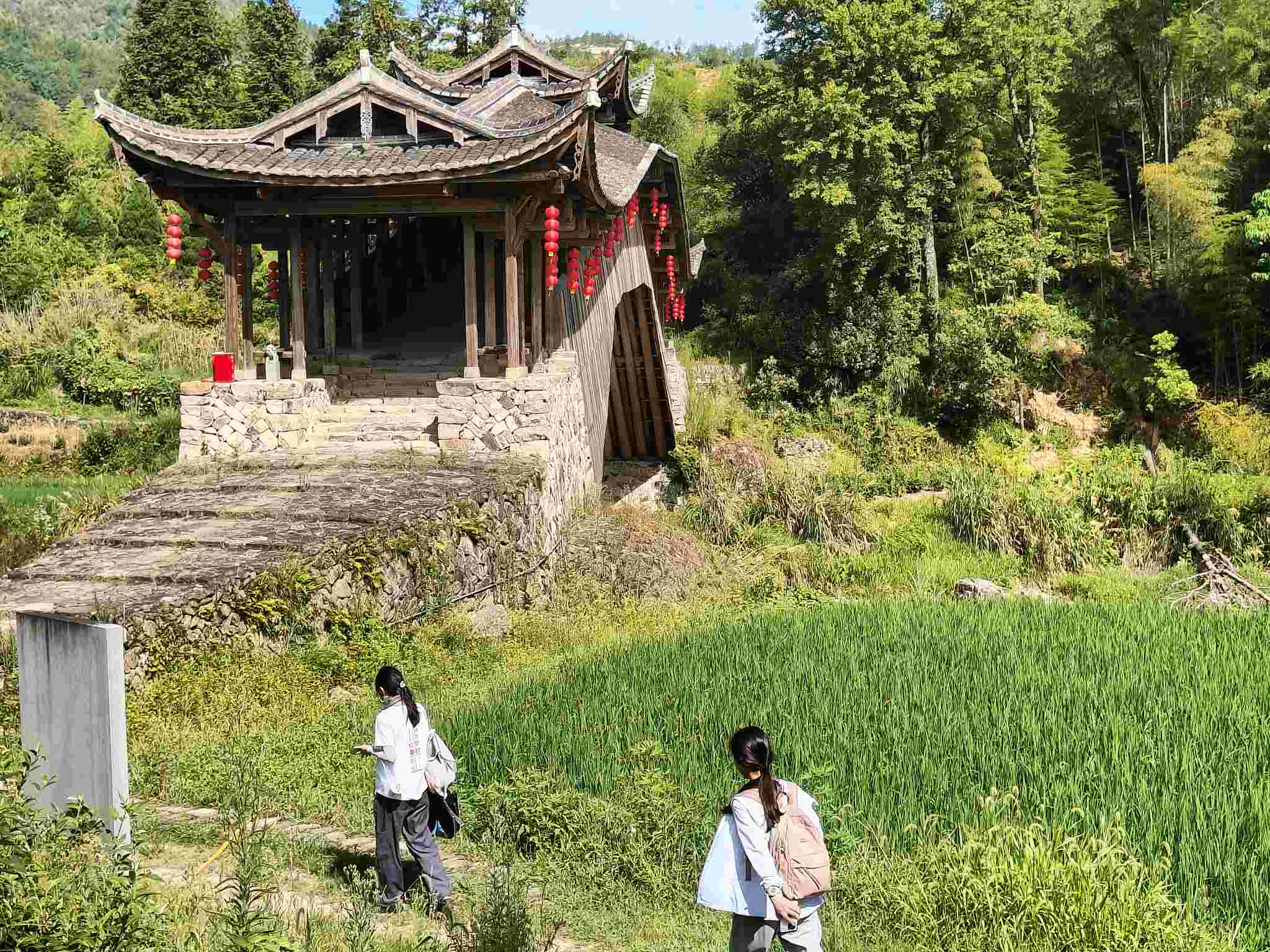 “天氣熱的時候還有人走走,晚上在那散步很涼快,一般好的人都到縣城了,這里的人都很少了。”村民張祥告訴成員們,過去為了山上村民和行人通行建造的廊橋,也因公路建成而被“空置”了出來,現(xiàn)在的廊橋逐漸淡出了人們的生活。