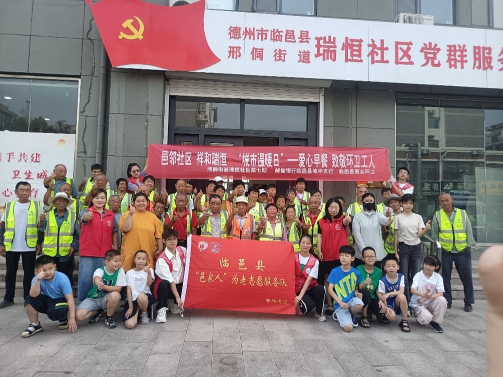 7月12日早上,社區(qū)聯(lián)合支教隊共同開展愛心早餐發(fā)放活動,為社區(qū)清潔工人免費提供早餐和熱水。晨露微晞,支教隊成員便提前到崗,早早開始做準(zhǔn)備工作,時間慢慢流逝,清潔工人們也一個接一個到來,支教隊成員各自就位,幫助社區(qū)發(fā)放早餐,倒水,清潔工人們紛紛表示感謝,大家聚在一起吃早飯,聊家常,現(xiàn)場和樂融融,最后,大家共同合影留念。
