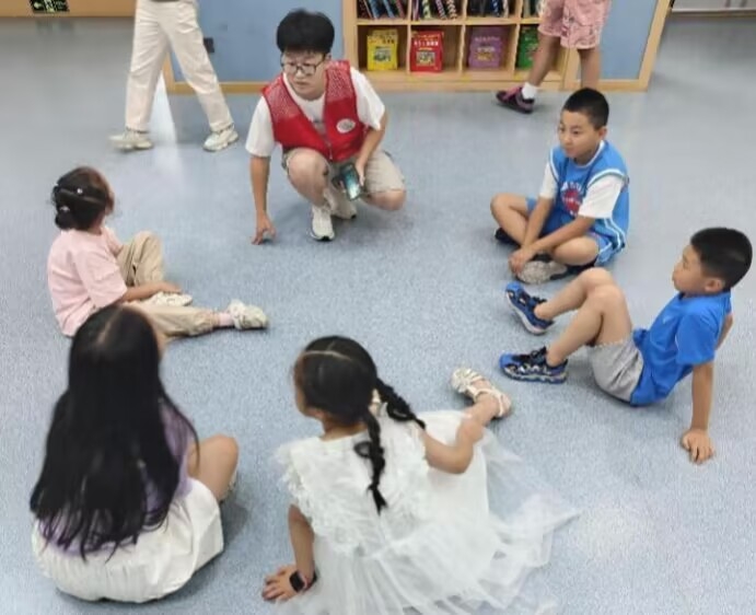7月8日,志愿?jìng)冇陂啺闉硤D書(shū)館舉辦開(kāi)營(yíng)儀式,其中設(shè)有自我介紹和破冰小游戲環(huán)節(jié),加進(jìn)了學(xué)生與隊(duì)員的互相熟悉,為日后活動(dòng)的順利開(kāi)展打下堅(jiān)實(shí)基礎(chǔ)。