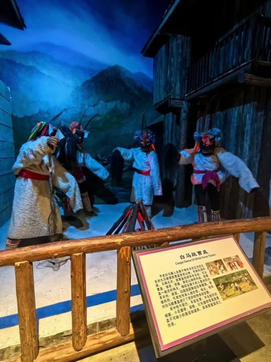 圖為綿陽(yáng)博物館內(nèi)的“白馬跳曹蓋”展區(qū)。中國(guó)青年網(wǎng)通訊員 胡欣怡 攝