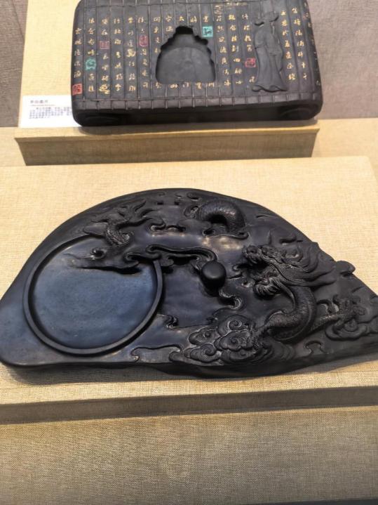 接著,實(shí)踐隊(duì)員參觀了“霧山石刻”展區(qū)。作為四川三大石刻藝術(shù)瑰寶之一,霧山石刻以其獨(dú)特的藝術(shù)魅力和深厚的歷史底蘊(yùn)吸引了無(wú)數(shù)文化愛(ài)好者和歷史研究者的目光。這些作品大多分布于江油市武都鎮(zhèn)和中壩鎮(zhèn),所用石材色黑如墨,質(zhì)地細(xì)膩溫潤(rùn)。石刻內(nèi)容或細(xì)膩刻畫(huà)花鳥(niǎo)魚(yú)蟲(chóng),栩栩如生;或大氣描繪人物山水,意境深遠(yuǎn)。每一刀一劃,都凝聚著雕刻師們的心血與智慧,展現(xiàn)了他們精湛的技藝和深厚的藝術(shù)功底。霧山石刻的制作工藝之復(fù)雜,更是讓實(shí)踐隊(duì)員們嘆為觀止。從采石到成品,需要經(jīng)過(guò)數(shù)十道工序的精雕細(xì)琢,包括開(kāi)型、出坯、繪樣、雕刻、鑲嵌、題詩(shī)、落款、收細(xì)、打磨、拋光等,每一環(huán)節(jié)都充滿了匠人對(duì)藝術(shù)的極致追求和無(wú)限熱愛(ài)。這種對(duì)細(xì)節(jié)的嚴(yán)格把控和對(duì)完美的不斷追求,讓霧山石刻成為了不可多得的藝術(shù)珍品。霧山石刻不僅是歷史的見(jiàn)證者,更是藝術(shù)的傳承者。它們以獨(dú)特的藝術(shù)語(yǔ)言,講述著古老的故事,傳遞著文化的力量。