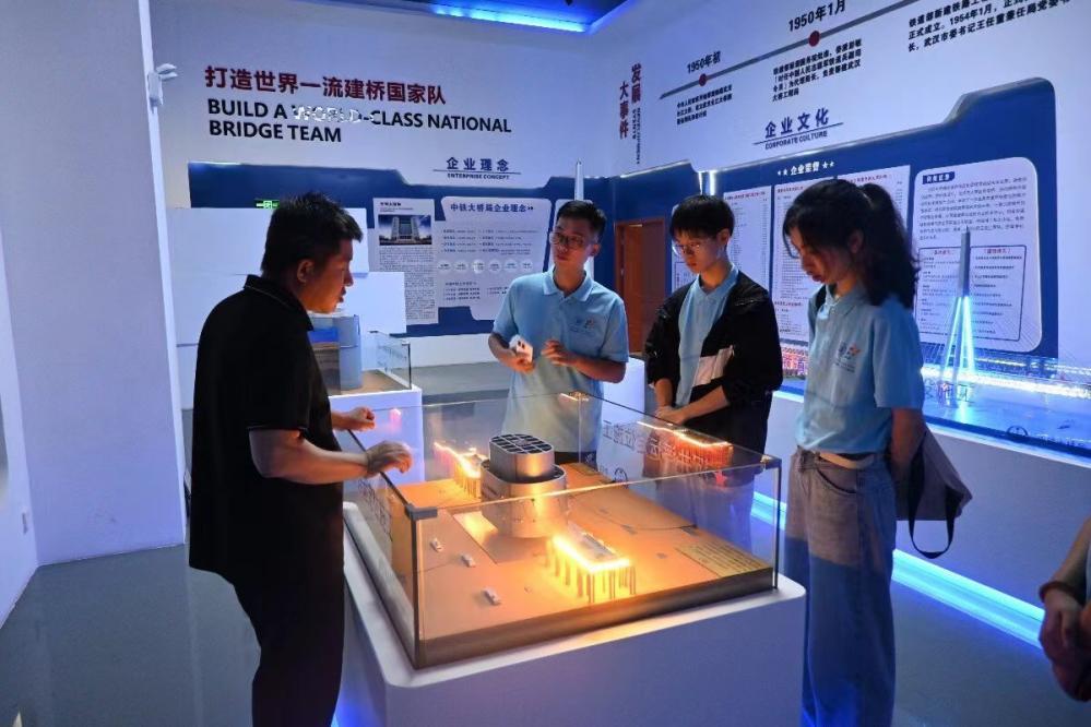 實踐團成員在講解員的帶領下,逐一走過“創(chuàng)業(yè)初期”、“跨越發(fā)展”、“科技引領”和“社會責任”四大展區(qū),深入了解了中鐵大橋二公司如何在一次次挑戰(zhàn)中砥礪前行,用一座座橋梁聯(lián)通大江南北,書寫著中國橋梁建設的壯麗篇章。