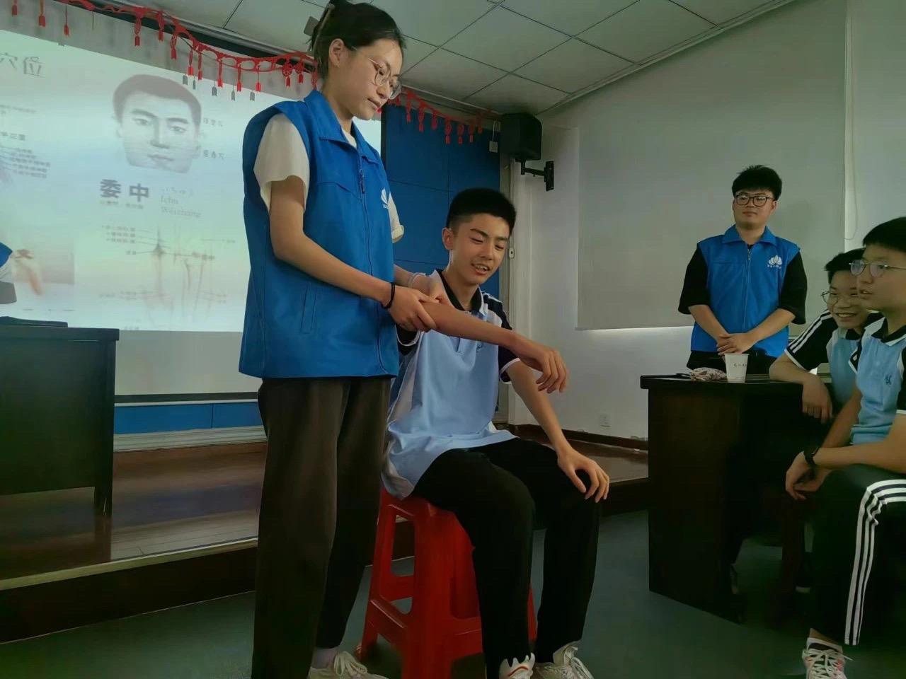 圖為志愿者為中小學(xué)生講解人身體上的穴位。 吳思遠(yuǎn) 供圖