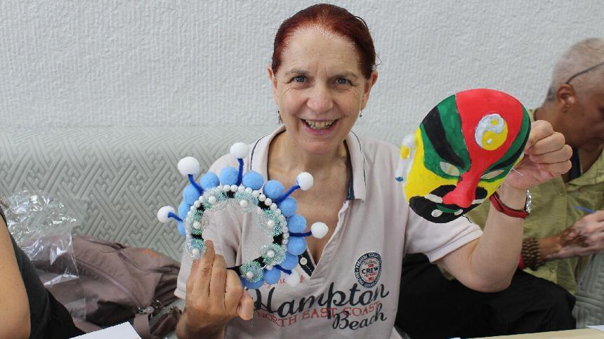 圖為外國學(xué)生展示臉譜與扭扭棒作品 王書陽供圖