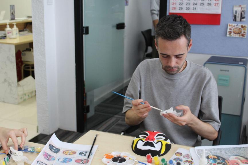 圖為外國學(xué)生繪制戲曲臉譜 王書陽供圖