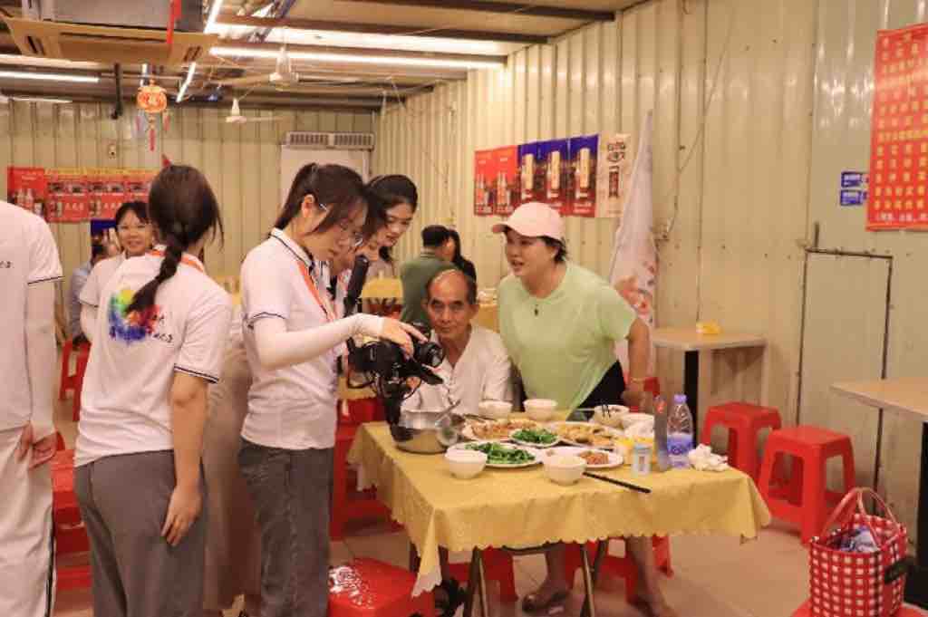 知薪實踐隊充分利用其專業(yè)優(yōu)勢,通過全媒體矩陣,包括社交媒體、短視頻平臺、網(wǎng)絡(luò)直播等,全方位、多角度地傳播化州美食的魅力。知薪實踐隊成員們化身為美食探索者,穿梭于早市各個美食攤位之間,用鏡頭捕捉每一道美食的誘人瞬間,用文字記錄下每一份獨特的味覺體驗。不僅如此,王奶奶邀請我們親近化州家常菜的制作現(xiàn)場,以直播的方式展現(xiàn)制作全過程,讓五湖四海的觀眾近距離感受化州美食的獨特魅力。此次的直播收獲了12萬點贊,在線觀眾踴躍互動,反響熱烈。
