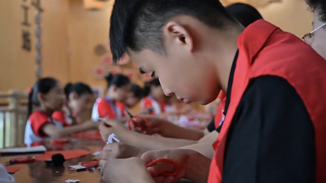 圖為現(xiàn)場專業(yè)剪紙老師為“鴻鵠實踐,青春獻(xiàn)禮”實踐隊隊員講解剪紙知識。 通訊員 趙樂冉 供圖