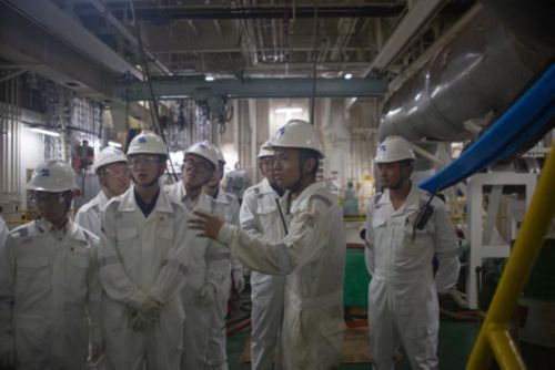 當(dāng)日下午,隊(duì)員們奔赴廣州文沖船舶修造有限公司(CSSC)實(shí)地調(diào)研。在大管和船長(zhǎng)的全程陪同下,隊(duì)員們深入生產(chǎn)一線,開(kāi)啟了一場(chǎng)理論與實(shí)踐深度碰撞的研學(xué)之旅。參觀機(jī)艙、駕駛室,與一線工作人員交流,認(rèn)識(shí)到理論與實(shí)踐差距,多名隊(duì)員感嘆:“課本知識(shí)與實(shí)際操作的差距讓我意識(shí)到,必須夯實(shí)專業(yè)基礎(chǔ),未來(lái)才能勝任崗位挑戰(zhàn)。”