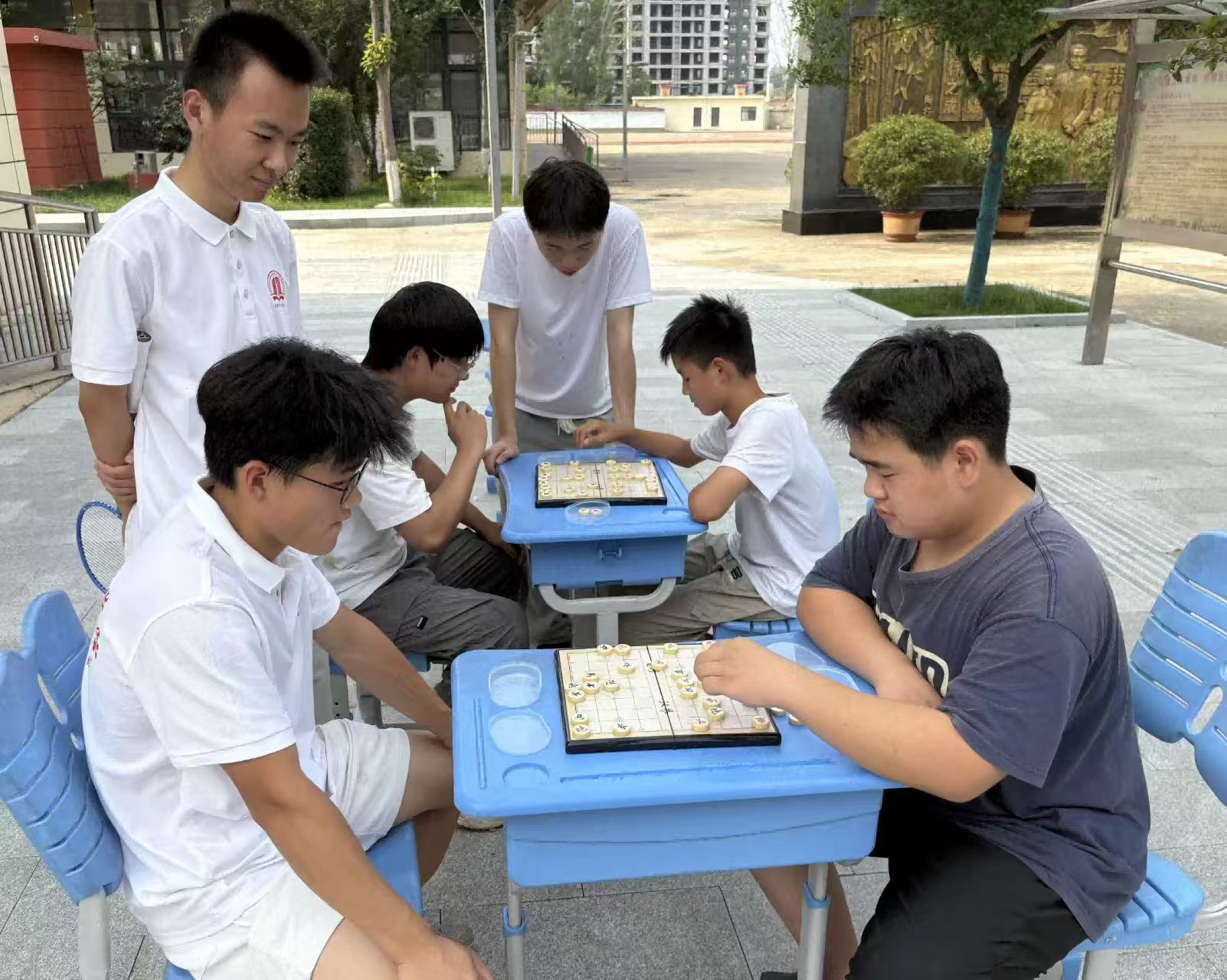 圖為志愿者與學(xué)生們在切磋棋藝。 單軍豪 供圖