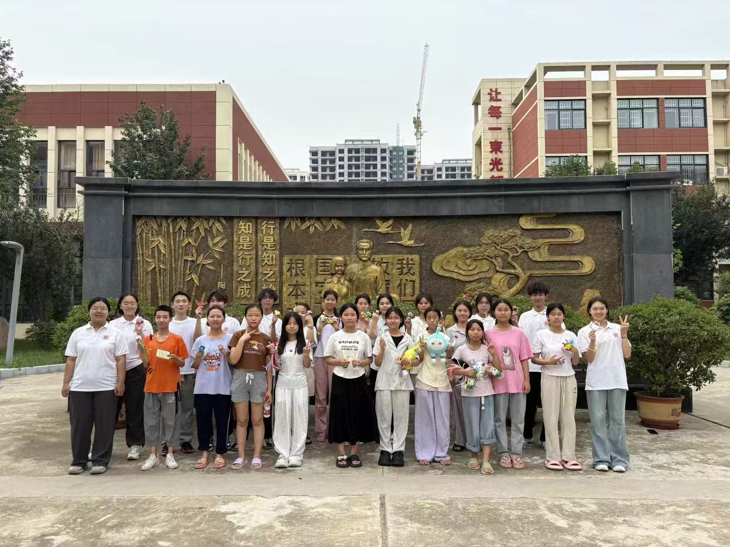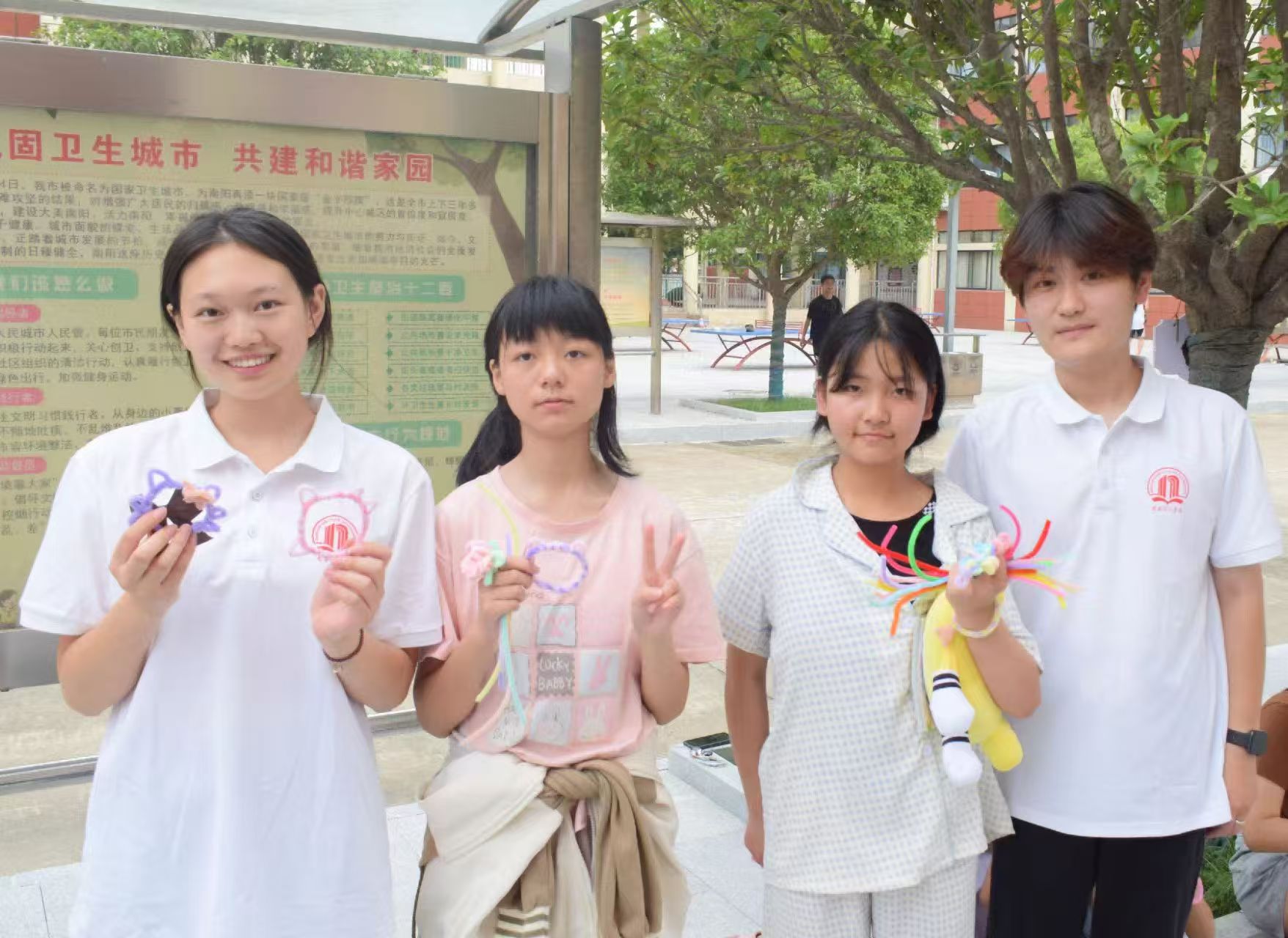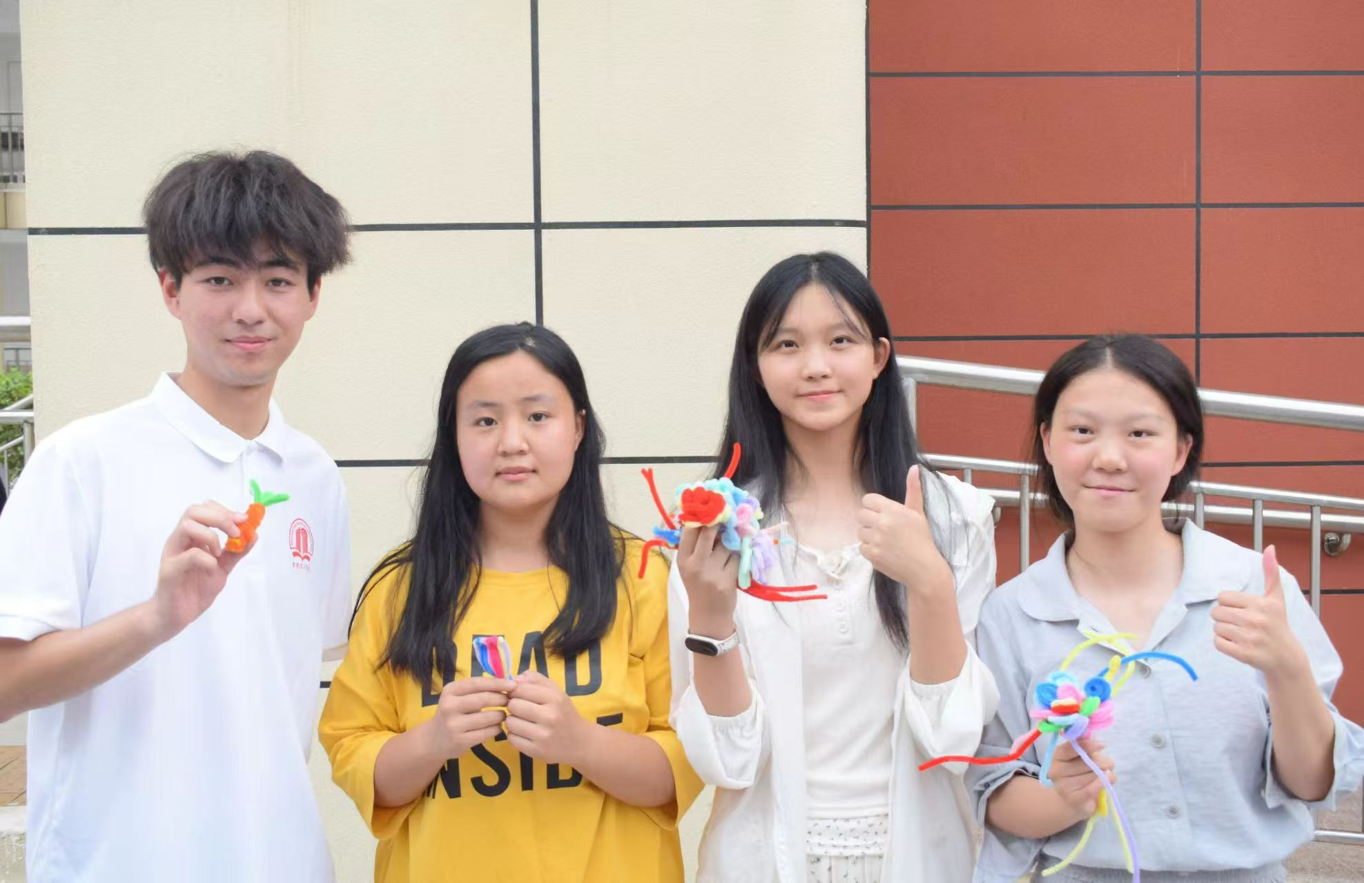 圖為志愿者與學(xué)生們展示手工創(chuàng)作成果。 李宏宇 供圖