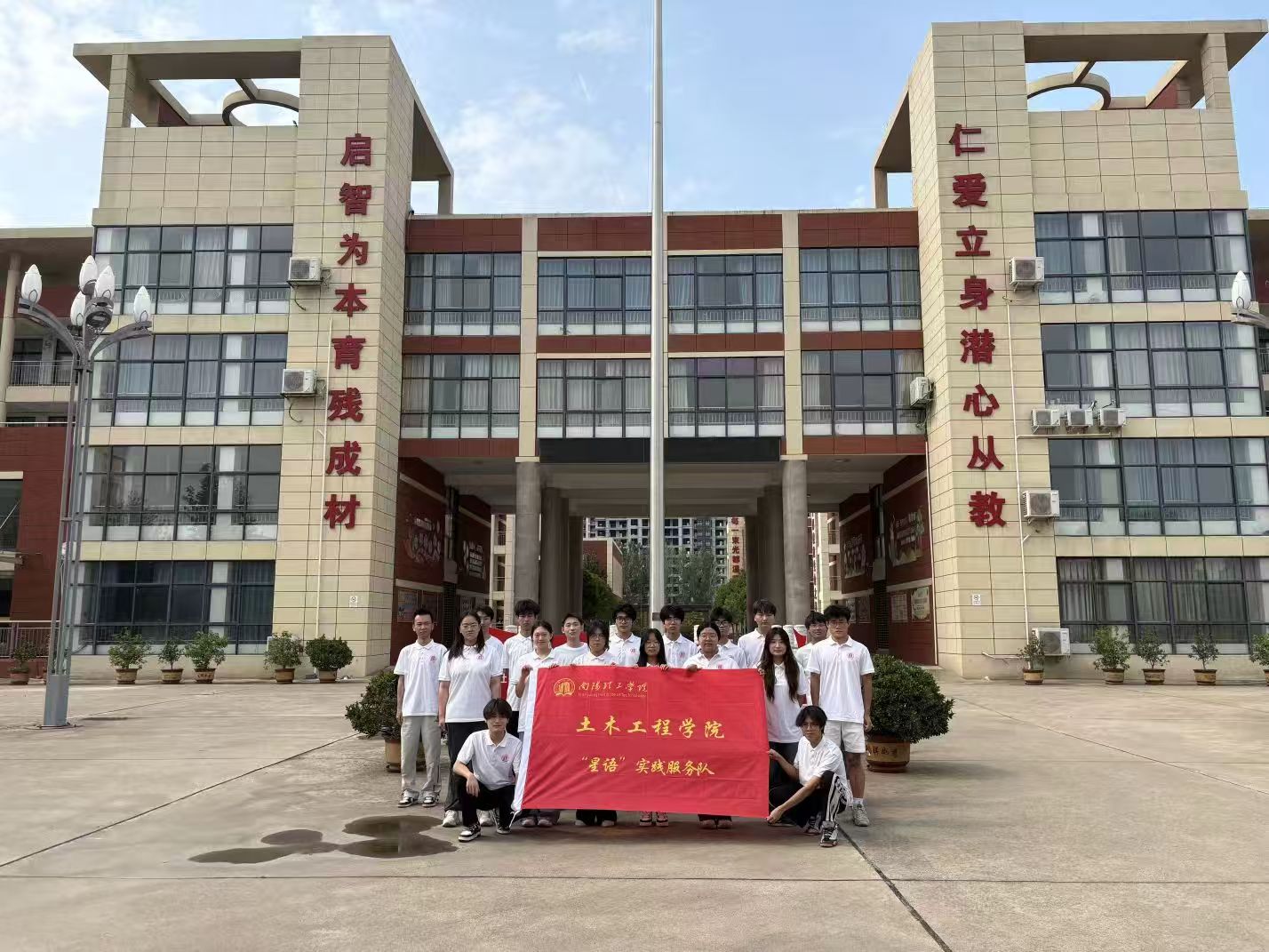 圖為志愿者與學(xué)生們合影留念。 柴灝明 供圖