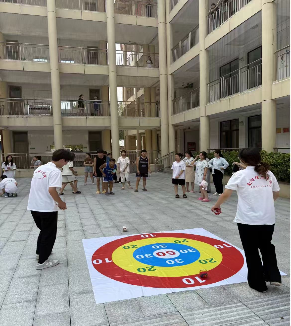 圖為志愿者與學(xué)生們做投擲沙包游戲。 柴灝明 供圖