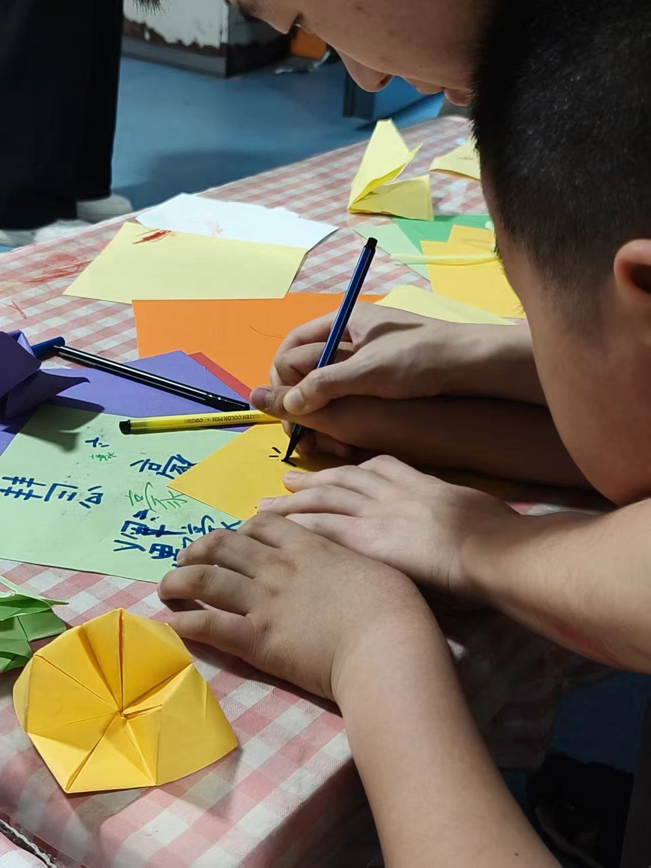 圖為志愿者們與孩子進(jìn)行趣味折紙。 李宏宇 供圖