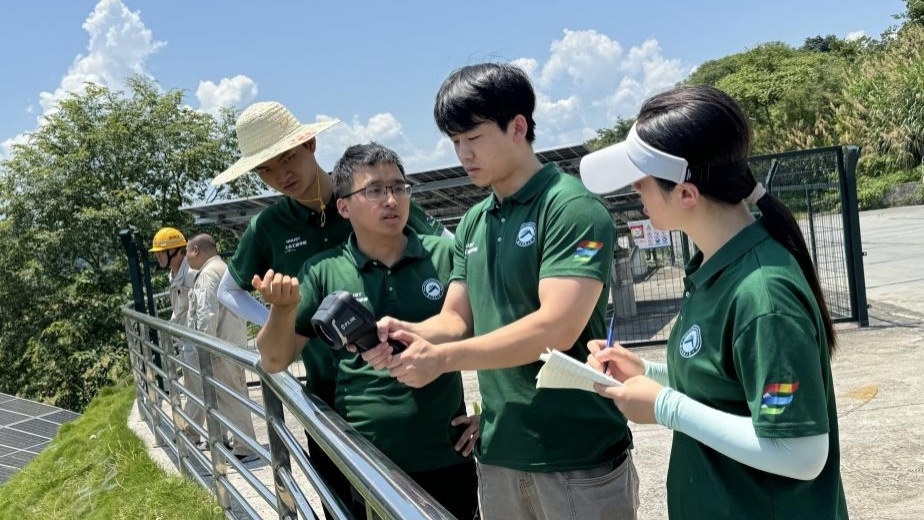 項目負責(zé)人介紹,該分布式光伏項目作為“整縣推進”試點工程,已接入?yún)^(qū)域能源網(wǎng),年發(fā)電量達150萬千瓦時,相當(dāng)于減排二氧化碳1200噸。團隊結(jié)合《新型電力系統(tǒng)發(fā)展藍皮書》分析:“分布式光伏作為能源體系的‘毛細血管’,其與建筑場景的融合正是‘源網(wǎng)荷儲’基層實踐的關(guān)鍵一環(huán)。”現(xiàn)場可見,在非居住區(qū)域,光伏板布局與山體朝向形成科學(xué)適配,而在前期調(diào)研過程中,團隊成員也發(fā)現(xiàn)在人員密度較高的居住區(qū)域已嘗試將光伏板作為屋頂遮陽構(gòu)件,說明太陽能的使用已經(jīng)初具規(guī)模,也初步體現(xiàn)了“光伏建筑一體化”的變化趨勢