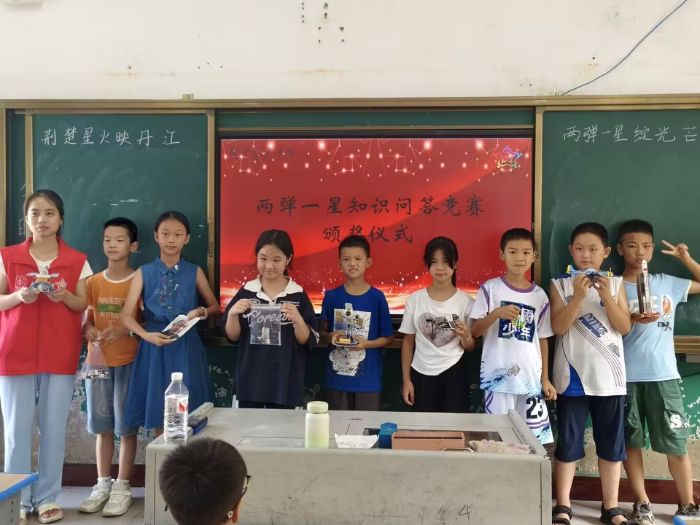 本網(wǎng)訊(通訊員 楊天琪,何瑞雪)7月1日至12日,來(lái)自湖北醫(yī)藥學(xué)院“星火”暑期社會(huì)實(shí)踐隊(duì)的志愿者們走進(jìn)丹江口市丁家營(yíng)鎮(zhèn)小學(xué),開(kāi)展了為期12天的“兩彈一星”主題志愿服務(wù)活動(dòng);顒(dòng)以“荊楚星火映丹江,兩彈一星綻光芒”為主題,通過(guò)理論教學(xué)、實(shí)踐課程和團(tuán)隊(duì)活動(dòng),為鄉(xiāng)村孩子們帶來(lái)了一場(chǎng)別開(kāi)生面的愛(ài)國(guó)主義與科學(xué)精神教育。
