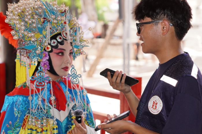 當(dāng)采訪接近尾聲時,調(diào)研團(tuán)隊向石妍老師提出了合影的請求,石老師說,有很多游客也會在演出結(jié)束后找她合影,而這恰是豫劇傳播的“埋根”和“播種”。