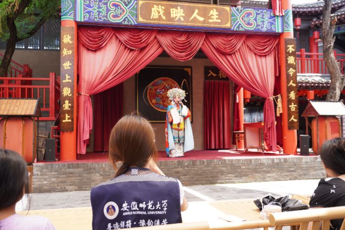 7月4日,安徽師范大學(xué)音樂學(xué)院赴河南省開封市豫劇院祥符調(diào)刀馬旦藝術(shù)調(diào)研團(tuán)隊的調(diào)研之旅走進(jìn)了開封市著名旅游景點文化地標(biāo)——萬歲山武俠城。在此行中,團(tuán)隊以“傳統(tǒng)文化的創(chuàng)造性轉(zhuǎn)化和創(chuàng)新性發(fā)展”為研究切口,重點考察了景區(qū)內(nèi)深度融合創(chuàng)新的展演節(jié)目形式,見證了豫劇藝術(shù)在文旅場景中迸發(fā)的鮮活生命力和豫劇人在豫劇傳承發(fā)展道路上的大膽嘗試。
