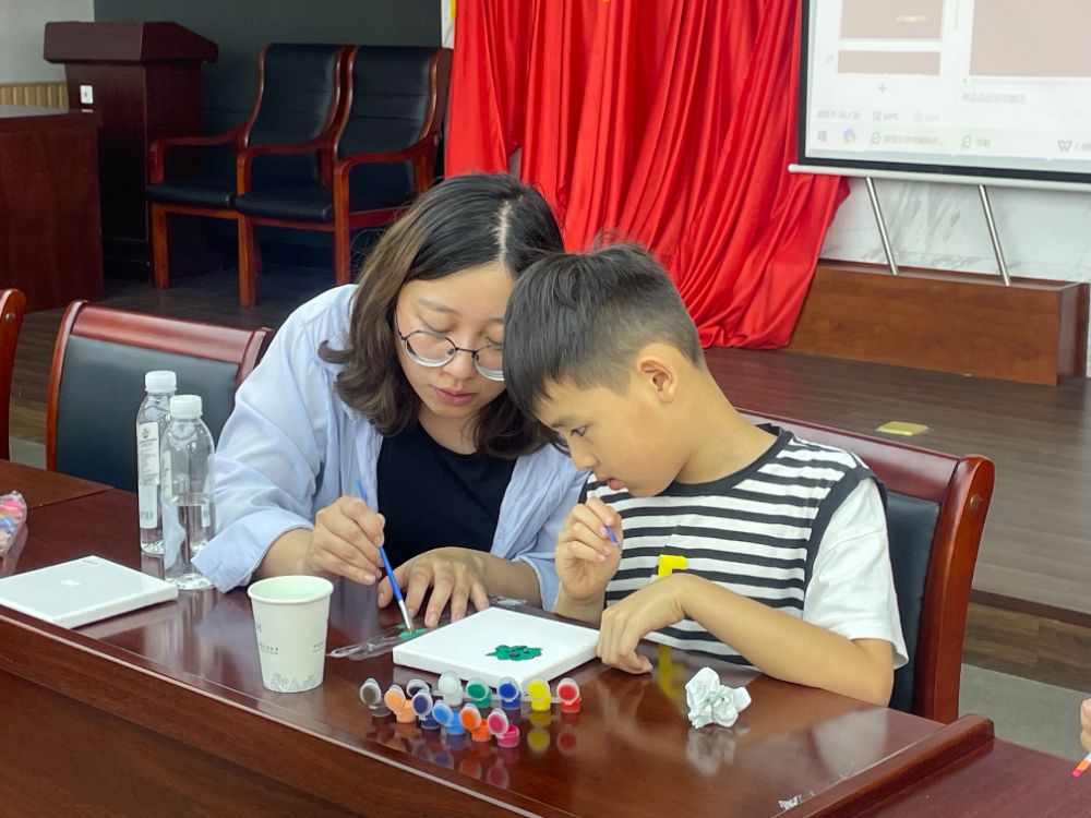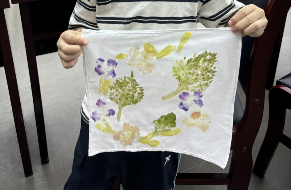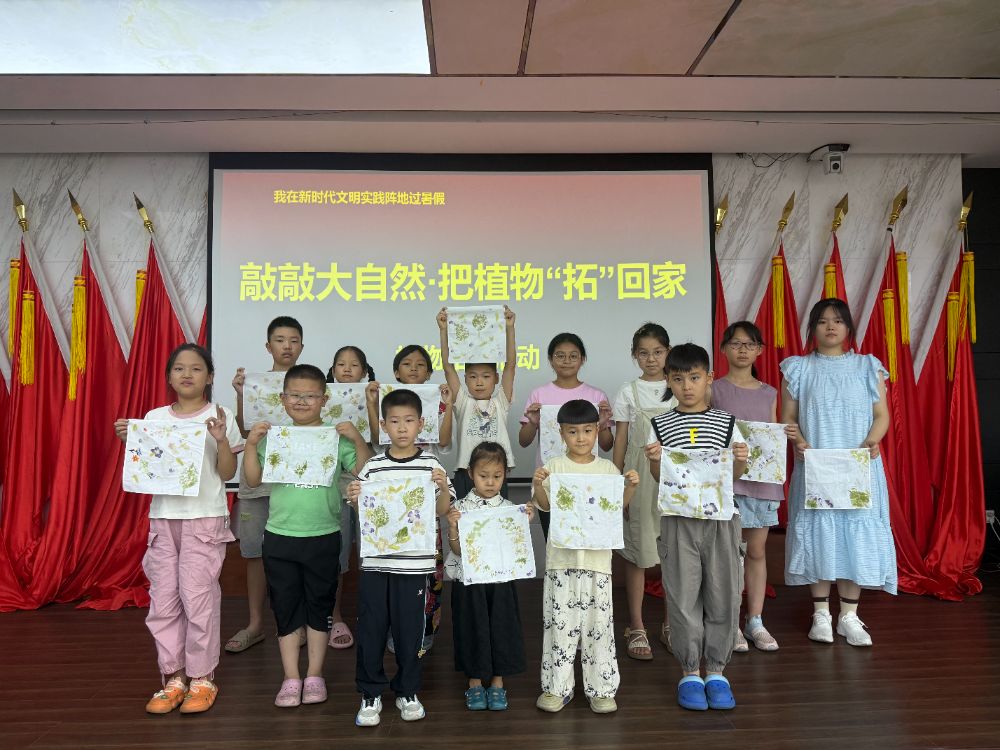 為增強(qiáng)教學(xué)趣味性,團(tuán)隊(duì)通過視頻播放向孩子們介紹了拓染的起源、工具和流程。隨后在指導(dǎo)老師帶領(lǐng)下,小朋友動(dòng)手操作,盡情釋放想象力,一塊塊布料上呈現(xiàn)出斑斕多彩的自然紋樣。孩子們的作品純真而靈動(dòng),不僅展現(xiàn)了童趣與美感,也在潛移默化中傳播了傳統(tǒng)文化的溫度。