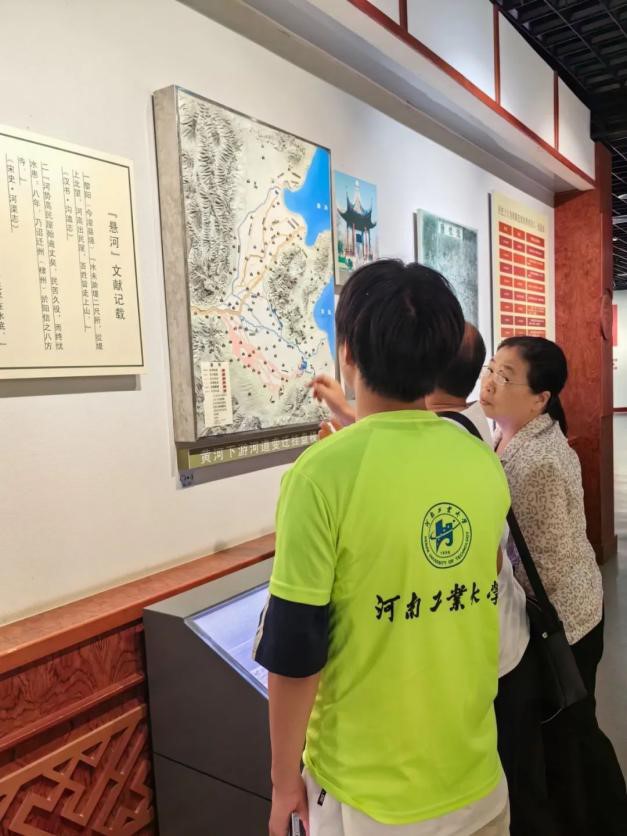 隨后,團(tuán)隊前往鄭州市黃河博物館學(xué)習(xí)。在了解黃河博物館承載的文化與治理歷史后,團(tuán)隊成員將電氣工程、智能控制等領(lǐng)域的核心概念融入博物館展陳講解,介紹 “綠色電力開發(fā)助力黃河生態(tài)系統(tǒng)可持續(xù)保護(hù)”“現(xiàn)代智能水利設(shè)施中電氣自動化與傳感技術(shù)應(yīng)用” 等內(nèi)容,吸引了大量游客駐足聆聽。團(tuán)隊還設(shè)計并現(xiàn)場發(fā)放關(guān)于 “黃河流域環(huán)境保護(hù)協(xié)同推進(jìn)與智能電網(wǎng)創(chuàng)新發(fā)展” 的專題調(diào)查問卷,收集社會各界意見和訴求,為后續(xù)研究與實踐提供參考。